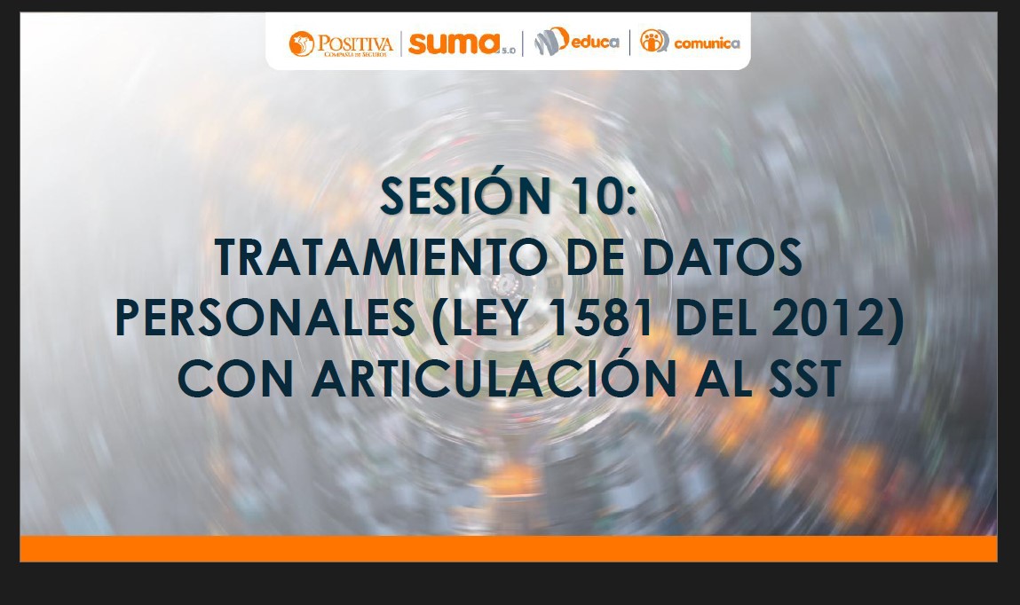 Posipedia > Comunidad nacional de conocimiento > Prevención de peligros en la administración publica > Sesión 10: Tratamiento de Datos Personales Según la Ley 1581 de 2012 en el Contexto del SST – Fecha: noviembre 7, 2025 > 07.-PRESENTACION-SESION-10-TRATAMIENTO-DE-DATOS-PERSONALES-PORTADA