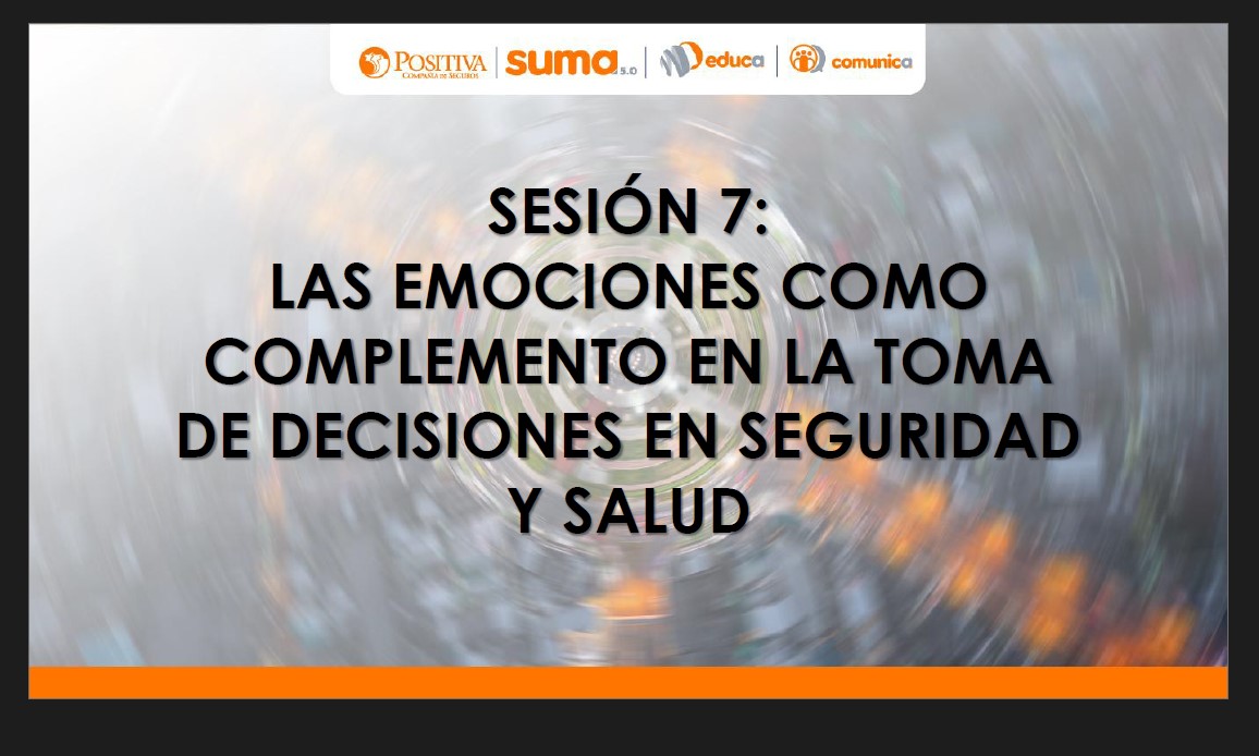 Posipedia > Comunidad nacional de conocimiento > Neuroseguridad aplicada en prevención de riesgos laborales > Sesión 7: Las Emociones en la Toma de Decisiones para la Seguridad y Salud Laboral – Fecha: noviembre 7, 2025 > 07.-PRESENTACION-SESION-7-LAS-EMOCIONES-PORTADA